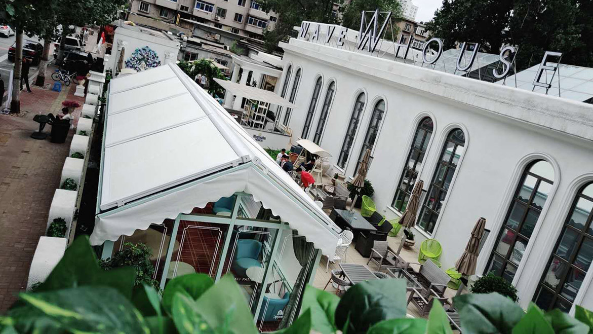 固定篷還能設計各式樣的款式,固定篷以優美的外型,外觀點綴居室,點綴了商業門店,提高了整個店面的視覺感。